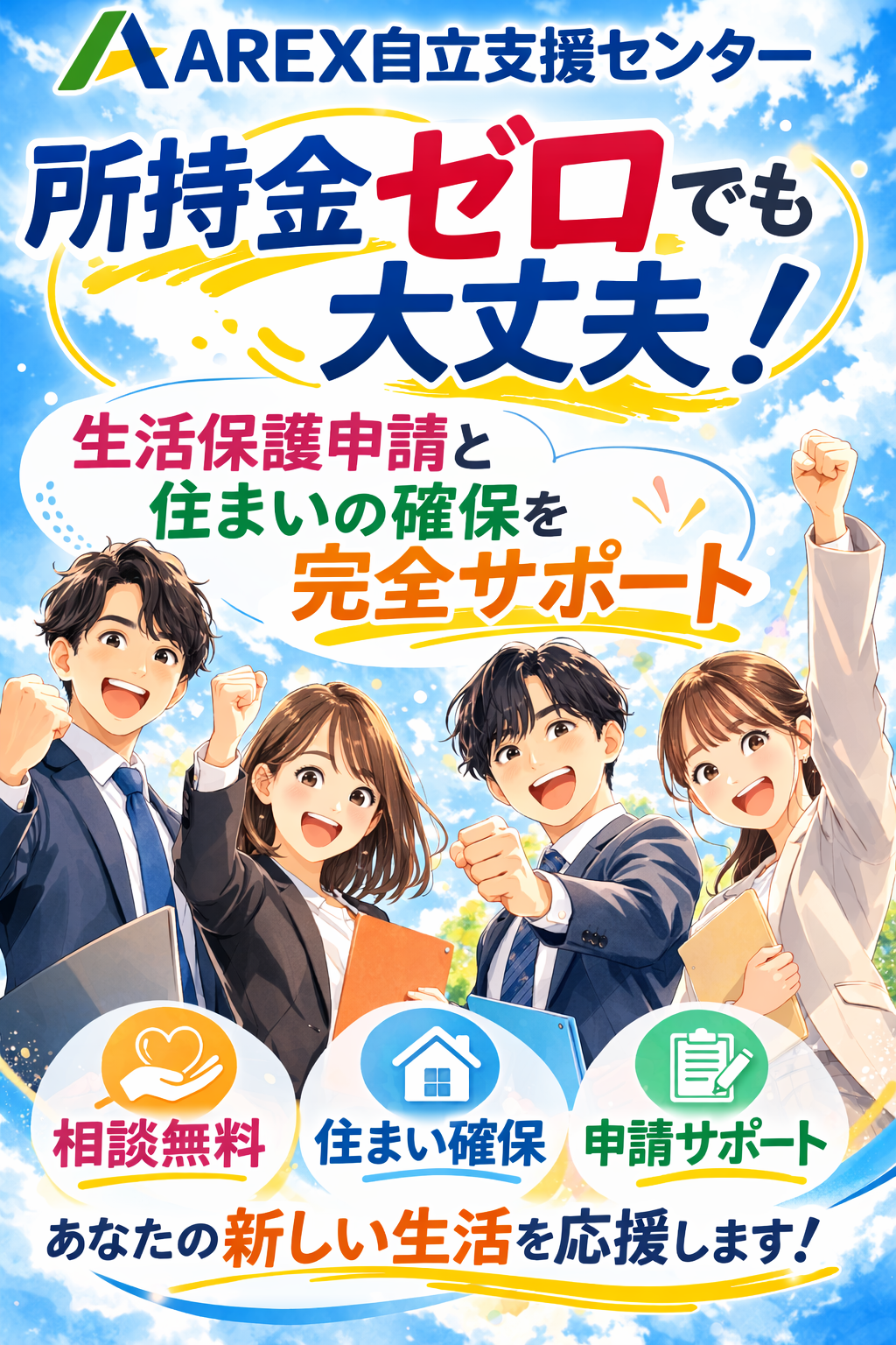 AREX自立支援センターは、来店下さればその日の内に住まいを確保いたします