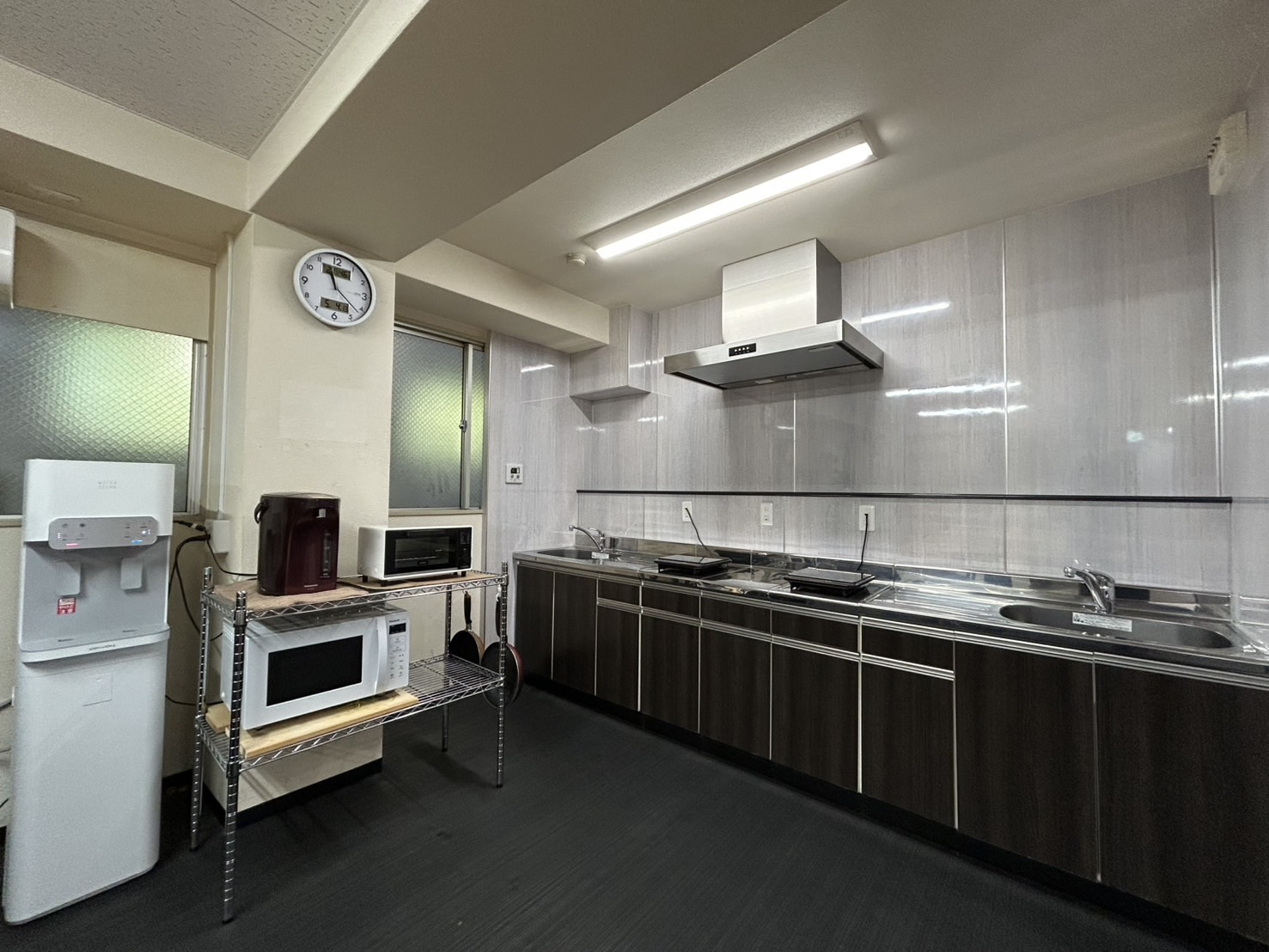 A. はい 自社物件には、共用のキッチンスペースがあり、24時間ご自由に利用可能です また、ポットや電子レンジといった調理器具も備え付けでございます